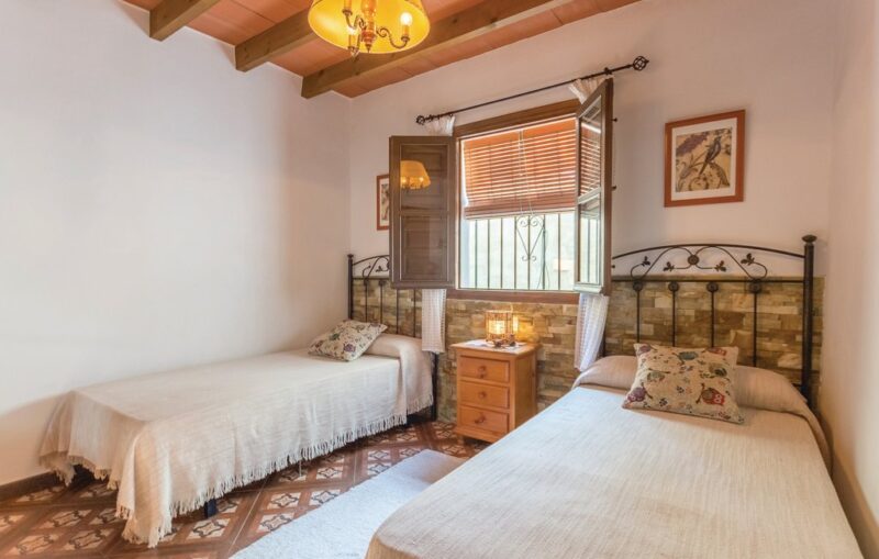 En el interior encontrarás dos acogedoras habitaciones — una con cama de matrimonio y otra con dos individuales, por lo que es ideal para familias pequeñas o parejas que buscan tranquilidad y espacio.